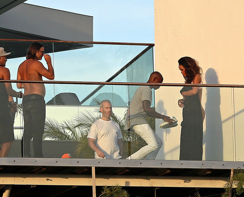Rihanna made tabloid headlines this week after photos surfaced of her looking pregnant. But from the looks off these pics we highly doubt that she is knocked up by Drake or Chris Brown.