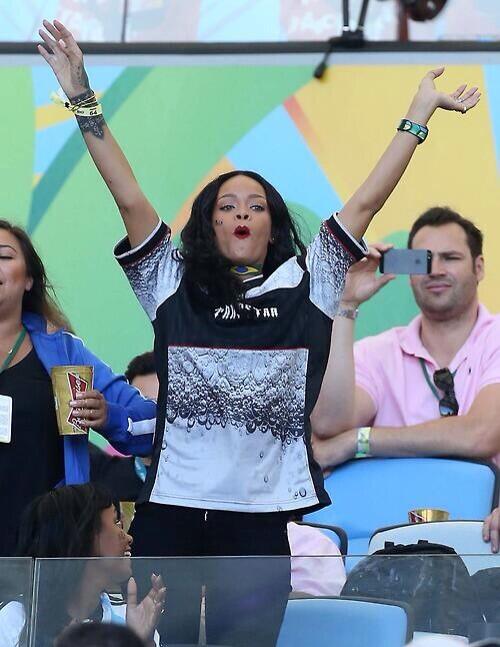 The Bajan singer, 26, was one of thousands in attendance at the Maracana Stadium in Rio de Janerio for the World Cup final between Argentina and Germany on Sunday.
